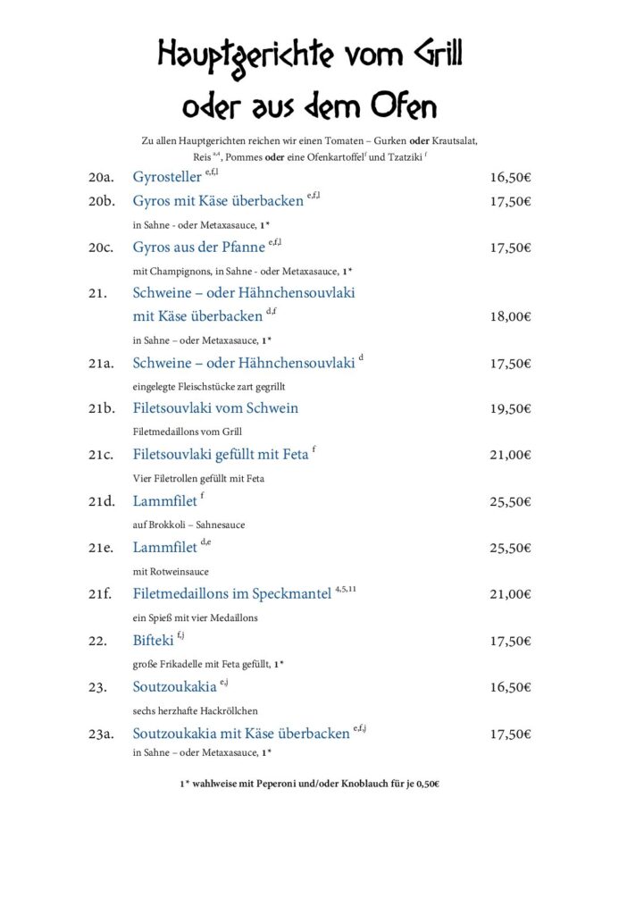 Unsere Speisekarte